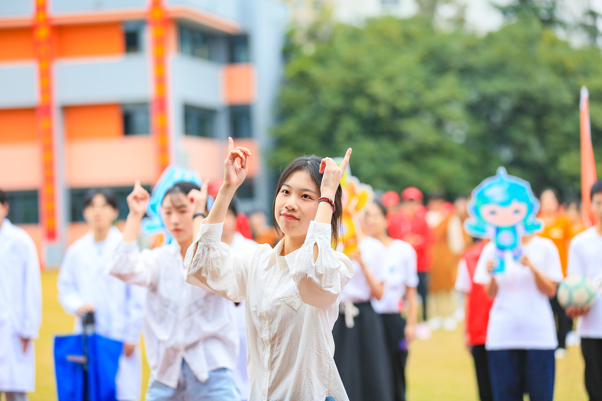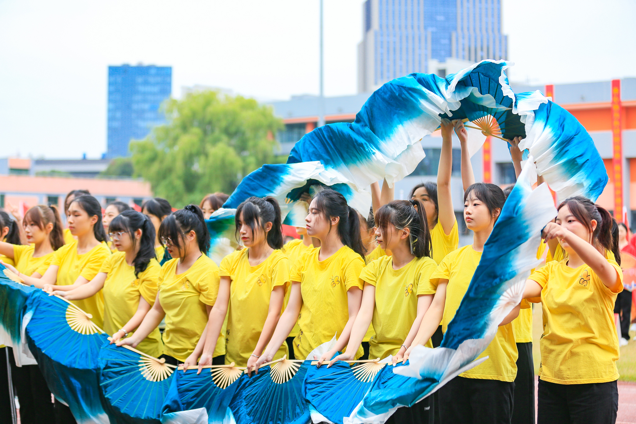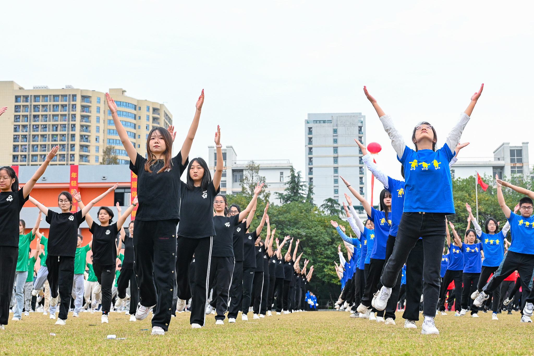 铿锵有力的音乐响起,穿着各色院服的城院学子编织出了蓝天之下最靓丽的风景线。健美操和广播操队列规整、动作整齐,这恰到好处的力度与极强的节奏律动互相融合,刻画出少年风华正茂的最美姿态。